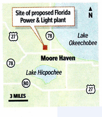 Across the nation, the coal industry and government are planning the construction of 150 new coal-fired plants throughout the U.S. that will utilize "clean coal" technologies (Environment Florida, Feb. 01, 2007). With increased financial backing from the government, it comes as no surprise that Florida Power & Light (FPL) is proposing the construction of several new coal-fired power plants to meet Florida's future electricity needs. Initially planned for St. Lucie County, FPL wanted to build "two 850 megawatt supercritical pressure, pulverized, coal-fired units" (RTP Environmental Associates 2005). After the proposal was rejected due to environmental concerns (Everglades face new pollution threat, 2007), FPL is now proposing to construct a different facility in Moore Haven, FL (Figure1).